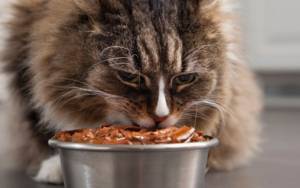 Чтобы избежать ожирения у кошки, миска с едой не должна быть все время доступна. Это обусловлено тем, что котам очень тяжело остановиться при виде пищи. Регулярные переедания чреваты серьёзными заболеваниями, вследствие чего коты перестают испытывать чувство насыщения и кот постоянно хочет есть. Кормите животное не более трёх раз в день