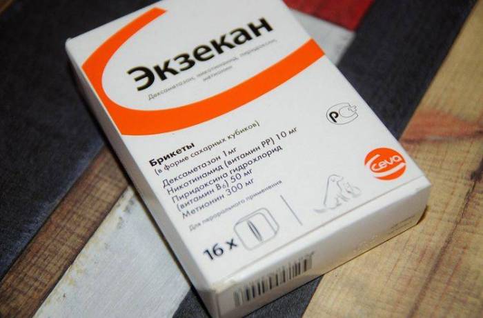 Экзекан – препарат, выпускаемый французским производителем в виде кубиков. Их следует давать животному внутрь. Лекарство имеет белый цвет и легко растворяется в воде. Основной компонент препарата – дексаметазон, который оказывает противовоспалительное действие и помогает при разных видах кожной аллергии. Он устраняет отеки, покраснения, зуд и раздражение кожи. Попадая в пищеварительную систему, вещество быстро всасывается в кровь, затем попадает в ткани и удаляется вместе с мочой. Также Экзекан содержит другие полезные вещества: