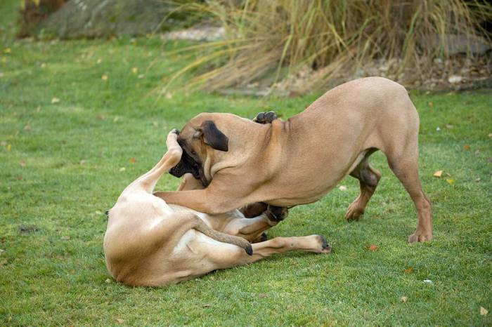 Хотя агрессия к другим собакам обычно ниже, чем к людям, у многих есть и она. Они не переносят других собак, даже самые спокойные фила доминантные по умолчанию. Любая агрессия к другой собаке может закончиться гибелью противника, так как существует не так много пород, которые смогли бы противостоять ей.