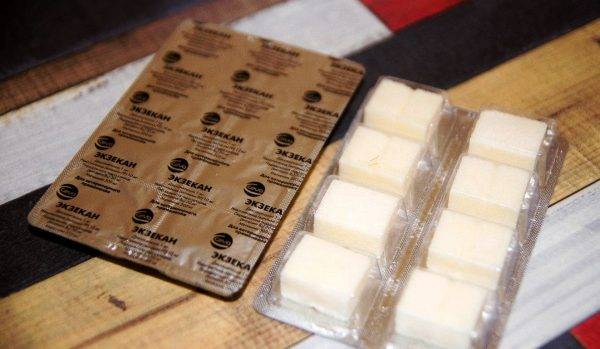 Экзекан для собак выпускается в виде небольших кубиков, напоминающих кусочки рафинированного сахара, заключенных в блистер.