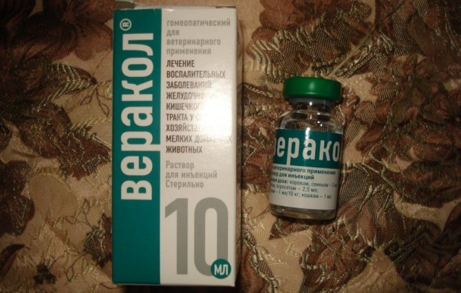 Для устранения кишечных коликов и метеоризма ветеринары также нередко предпочитают комбинацию гомеопатических средств. Кратность приёма Веракола в таких случаях — два-три раза в день при длительности терапии 5-6 дней.