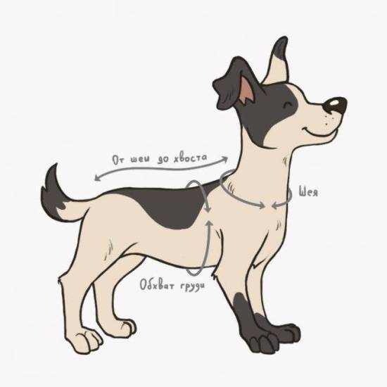 Перед покупкой, с собаки снимаются ее размеры, при замере необходимо, чтобы животное стояло ровно, дабы не допустить погрешностей.