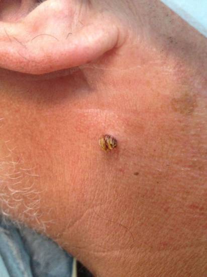 | Струпья | Коричневые корочки можно наблюдать внутри ушной раковины. |