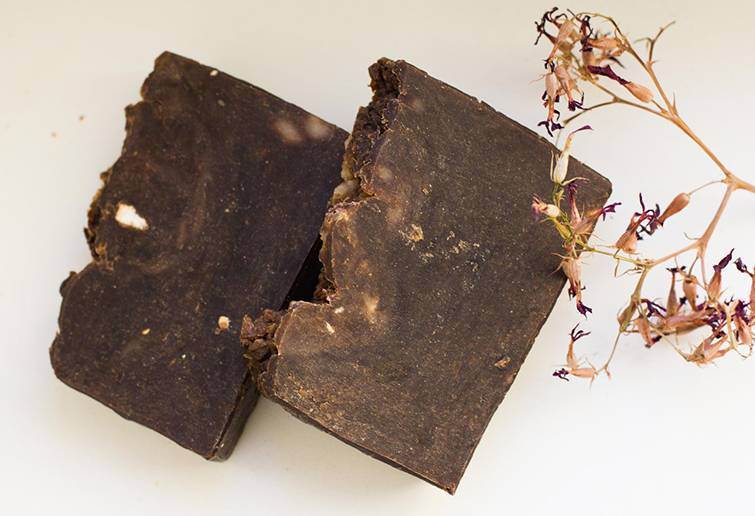 Дегтярное мыло имеет тёмно-коричневый цвет