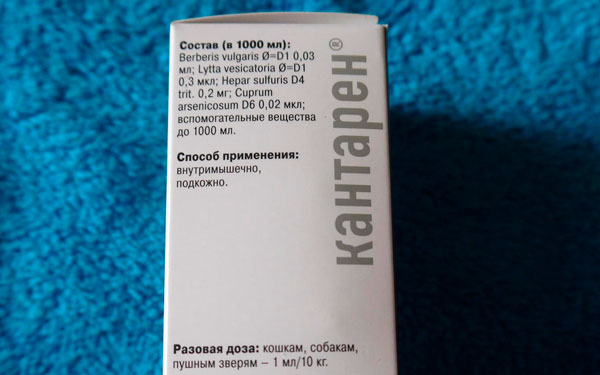 В зооаптеках можно найти раствор Кантарен во флаконах двух образцов: