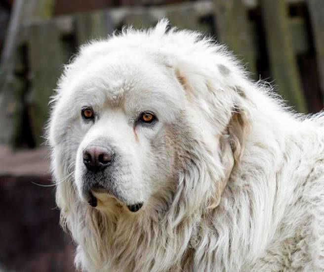 - Шерсть и окрасы: Только однотонный, на мордочке, лапах, волос тут более короткий и значительно густой. По шеи и остальному телу пса с длинной, густой, и немного волнистого типа, на ощупь она жесткая, подшерсток хорошей выраженности. Шея с характерным «воротником». Бедра с длинной, тяжелой шерстью. Окрасы: только однородный кипельно белый окрас; незначительные пятна, легкого персикового или кремового отлива – нежелательны.