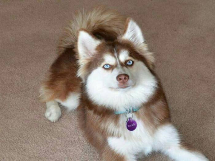 - окрас хаски, часто от этой породы достаются и голубые глаза.