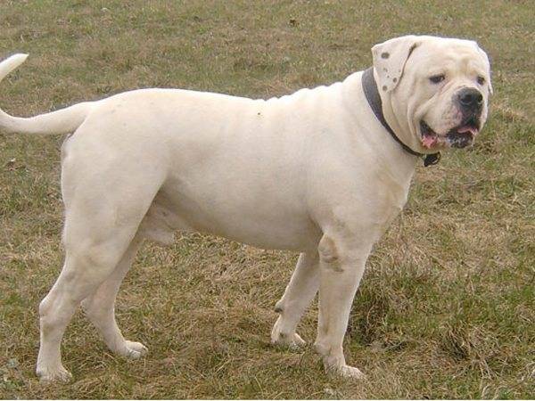 Это большой белый пес, очень недружелюбный внешне. Представитель породы достигает внушительных размеров – вес 46 кг, рост – до 67 см. Собака очень сильная, храбрая, часто используется на полицейской службе или в охранных целях. Однако на территории Великобритании содержать таких собак запрещено законом.