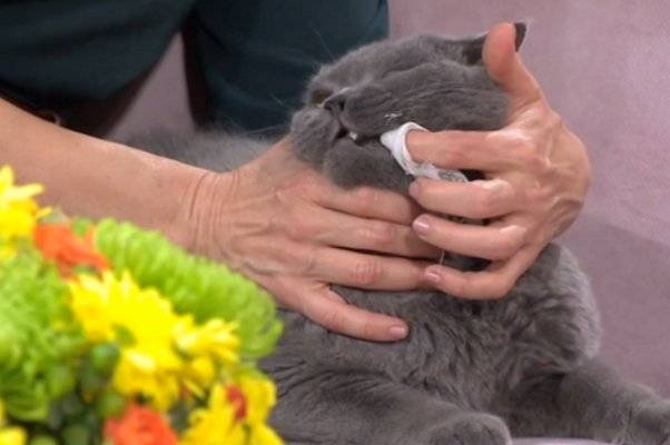 Возможно, придётся запеленать кота или попросить о помощи второго человека, чтобы один крепкодержал животное,а второй – чистил ему зубы.Особенно это актуально для взрослых агрессивных особей, которым впервые предстоит пройти подобную процедуру.