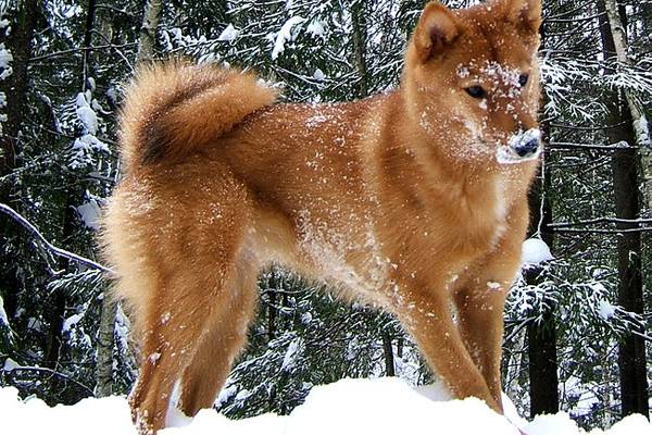 Рост – средний, крепкий костяк, сухая конституция. Голова в форме клина, слабовыраженные затылок и теменная часть. Морда острая, с тонкими и плотно прижатыми губами. Стоячие уши, небольшие темно-карие глаза, жесткая шерсть, умеренно опушенный и загнутый кольцом хвост, плечи покрыты «воротником» из более густой шерсти. Отличительная особенность этого типа – рыжий окрас, который для представителей других видов считается пороком.