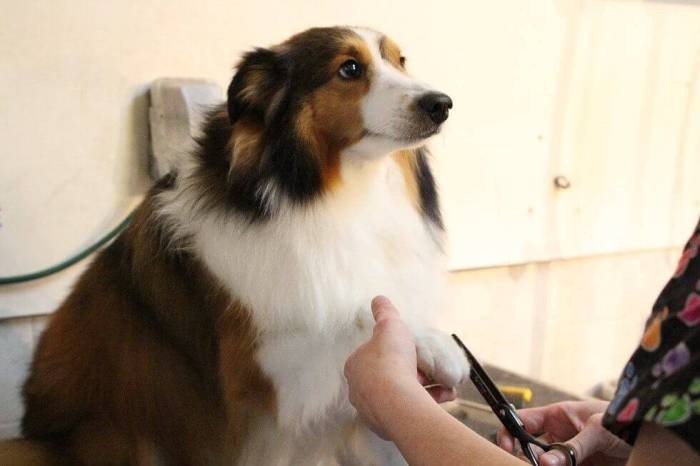 Лапам длинношерстных и жесткошерстных пород собак уделяют особое внимание. Свалявшаяся шерсть между пальцев служит источником боли, при попадании на нее снега или грязи, шерстяные комки становятся причиной дерматозов и дерматитов. Между пальцами шерсть выстригают