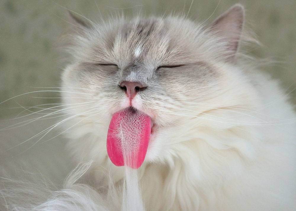 Очень часто можно увидеть, как кошка после длительного умывания сидит с высунутым языком. Возможно так она расслабляет мышцы или медитирует.