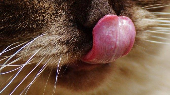 Если кошка быстро и часто высовывает язык, вероятнее всего, она пытается избавиться от неприятного запаха или вкуса. При подозрительном поведении необходимо: